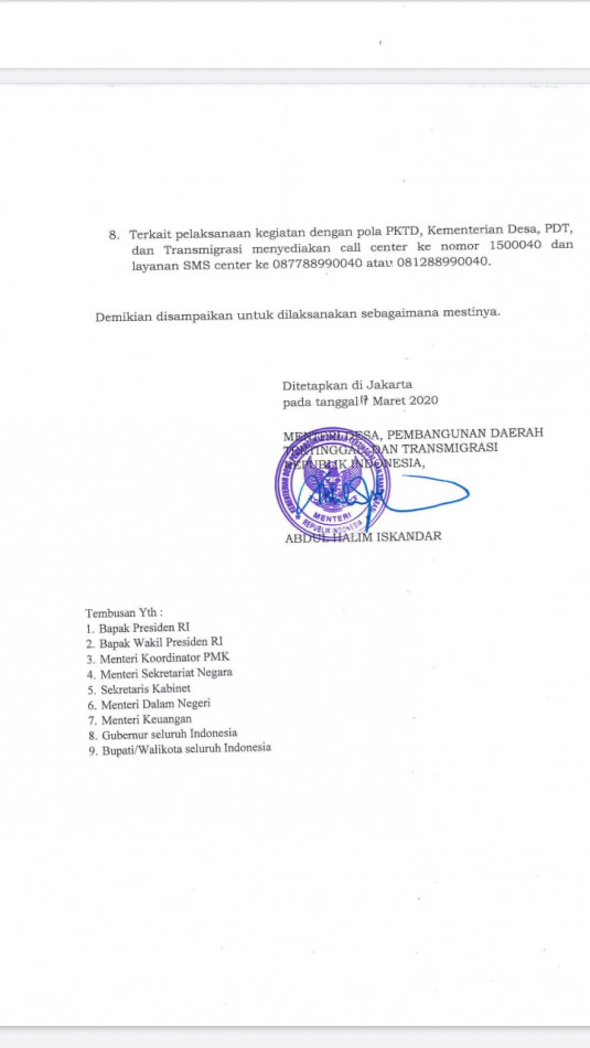 Gus Menteri, mengambil langkah-langkah konkret dengan mengeluarkan surat edaran perihal Pembinaan dan Pengendalian Dana Desa tahun anggaran 2020. Dalam edaran tersebut, desa yang telah menerima penyaluran dana desa tahap I, diminta segera memanfaatkannya untuk kegiatan padat karya tunai melalui pengelolaan secara swakelola.