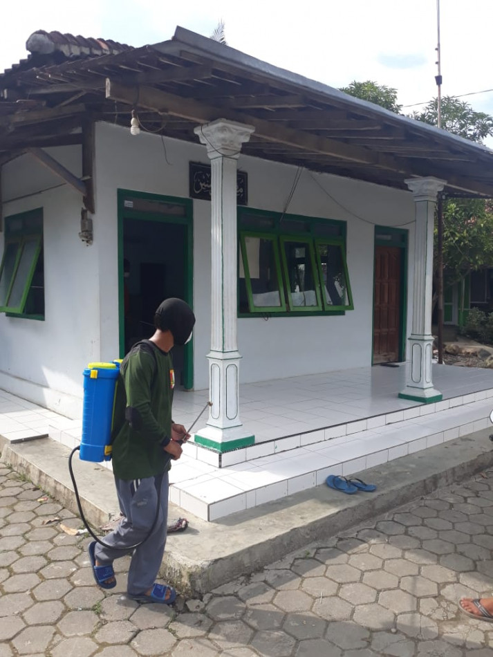Penyemprotan tersebut dilakukan di seluruh lantai, dinding, tempat wudhu dan kamar mandi.