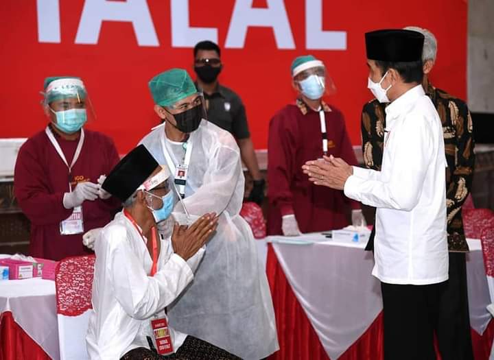 Presiden Joko Widodo dalam kunjungan kerjanya ke Provinsi Jawa Tengah turut meninjau jalannya pelaksanaan vaksinasi massal yang secara keseluruhan diperuntukkan bagi kurang lebih 1.000 penerima vaksin.