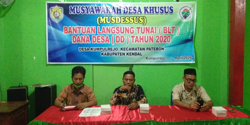 KUMPULREJO.DESA.ID - Pemerintah Desa(Pemdes) Kumpulrejo dan Badan Permusyawaratan Desa (BPD) Kumpulrejo Kecamatan Patebon Kabupaten Kendal gelar Musyawarah Desa (Musdes Khusus) validasi, finalisasi dan penatapan kartu keluarga (KK) calon penerima Bantuan Langsung Tunai(BLT) di Desa Kumpulrejo, bertempat di balaidesa Kumpulrejo. Jum'at.(24/04/2020)
