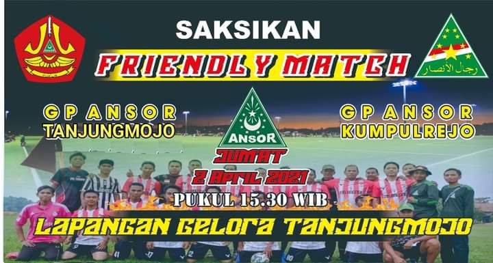 Dalam pertandingan sepakbola persahabatan yang digelar sore hari pukul 15.30 WIB ini dimenangkan oleh GP Ansor Ranting Tanjungmojo dengan skor 2-1. Ali Achmadi mengaku Kurangnya persiapan sebelumnya dari GP. Ansor Ranting Kumpulrejo tidak menghalangi semangat berolahraga sepakbola sahabat-sahabat Ansor. “Dari GP. Ansor Ranting Kumpulrejo sendiri sebenarnya tidak menargetkan kemenangan. Karena ini Ansor baru aktif lagi setelah sebelumnya agenda Ansor sempat tertunda akibat pandemi covid-19. Makanya sahabat-sahabat Ansor baik dari Kumpulrejo maupun Tanjungmojo antusias menjalankannya” ungkap Ali Achmadi.