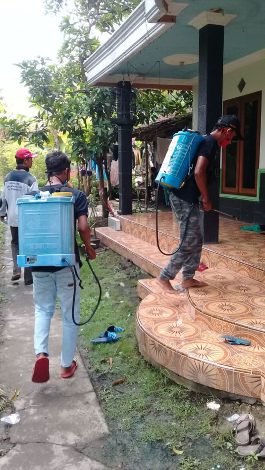Ahmad Gozali dan Nasirudin BPD dari unsur kewilayahan RW 004 ikut memantau pelaksanaan penyemprotan massal diwilayah RW 004 Desa Kumpulrejo "Jangan sampai ada rumah yang ketinggalan tidak disemprot" ungkap Gozali selaku wakil BPD Kumpulrejo.