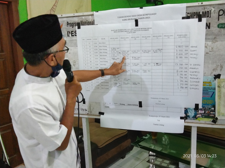 KUMPULREJO.DESA.ID - Pemdes Kumpulrejo melaksanakan Lelang Bondo Desa tahun 2021. Lelang kali ini meggunakan cara tertutup yaitu melalui amplop jadi pelelang tidak harus hadir pada saat lelang. Rabu 03/03/2021.